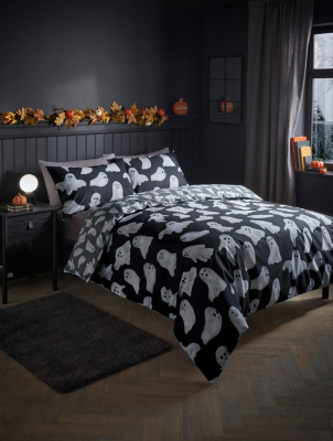 Black & White Halloween Ghost Reversible Duvet Set Home at ASDA